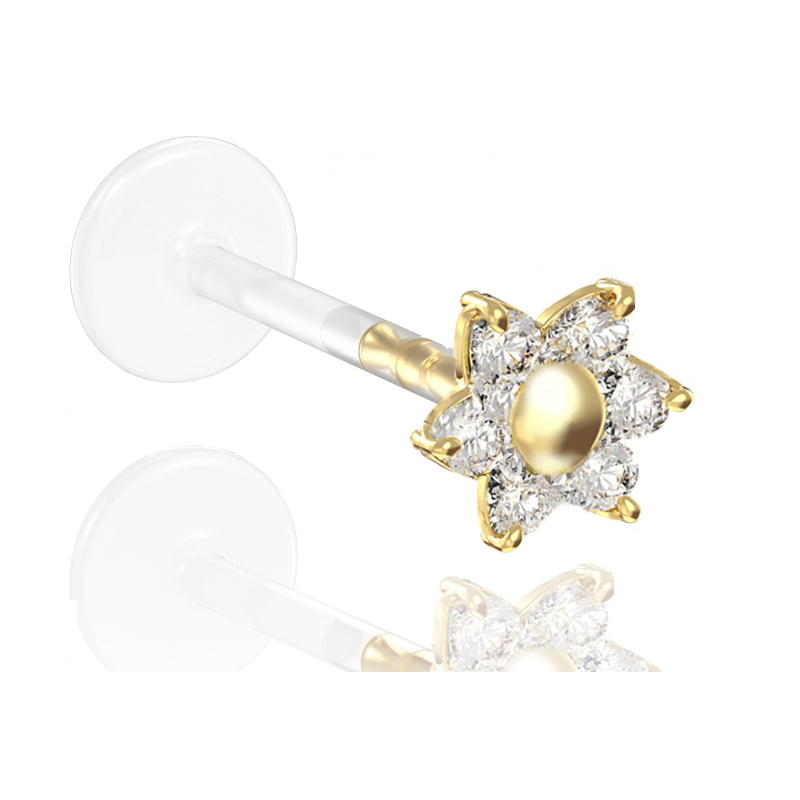 Ce bijou piercing est composé d’un motif en forme de fleur composé de d'oxydes de zirconium. Les pierres semi précieuses apportent aux boucles d’oreille beaucoup de brillant tout en restant discret. Porter un piercing bijoux mettra parfaitement en valeur vos oreilles ou votre sourire. Il se marie très facilement avec d’autres bijoux de corps, et parures de bijoux comme des créoles, colliers, pendentifs, bracelets et autres anneaux en or.