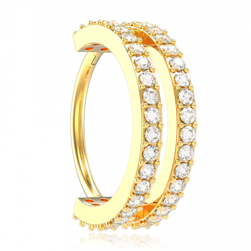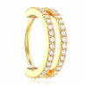 Pourquoi se contenter d’un seul anneau quand on peut en avoir 2 en 1 ! Notre Twin Ring en or 18k est composée de 2 rangées de Premium Cubic Zirconia pour encore plus de brillance et d’élégance. Rayonnez en portant ce bijou de piercing au Conch principalement mais aussi pourquoi pas à l’hélix dans un style loose tombant ou bien simplement au niveau du lobe. Votre visage n’en sera que plus lumineux.