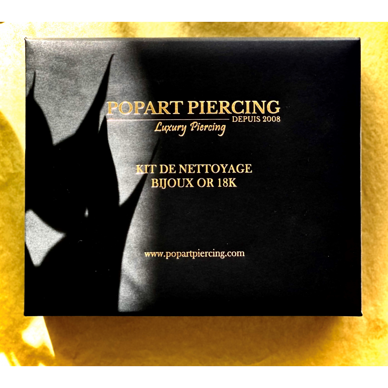 Lassé(e) de voir vos bijoux en or se ternir ? Rassurez-vous, vous n’êtes pas seul(e) dans ce cas. Popart Piercing a la solution pour vous ! Notre coffret de nettoyage spécial pour bijoux en or est l’outil idéal pour les garder étincelants et impeccables ! Ce kit comprend tout ce dont vous avez besoin pour nettoyer efficacement vos bijoux en or à la maison, en quelques minutes, et de façon naturelle !